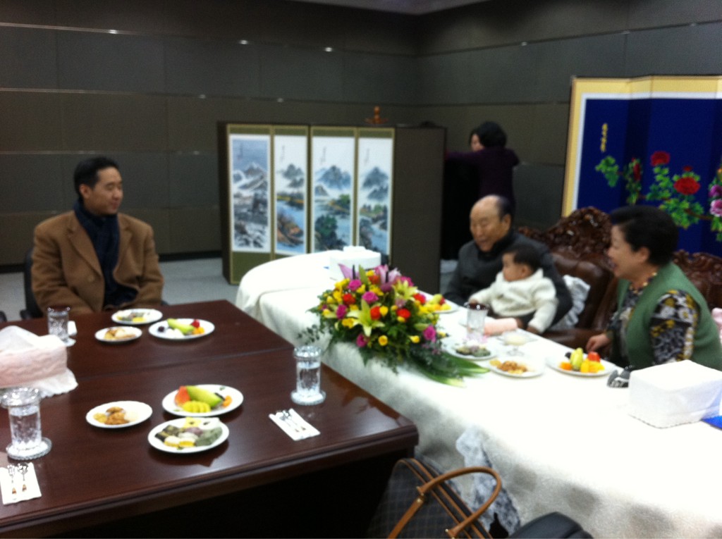 "The title is '천지인참부모정착 / Settlement of the True Parents of Heaven, Earth and Humankind.' (Father whistled). It is '정착 / 定着 / settlement,' not '안착 / 安着 / safe landing.' The settlement means nobody can move True Parents, and so what people can do is either they follow them, attend them or show them around. Then comes '실체말씀 선포 / Proclamation of the Substantial Word of God.'"