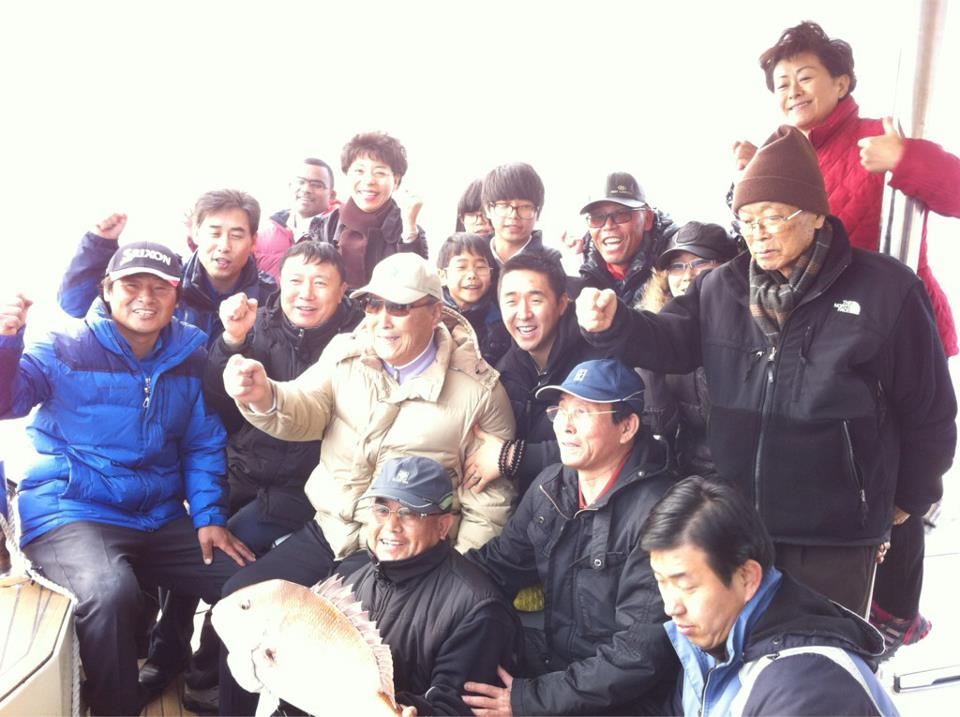 (@lovintp in English) Fishing off Geomundo today, we caught a series of fish that would break the scales^^. Seeing True Father so happy makes us happy, too.
