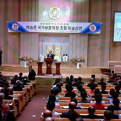 come to the Tongilgyo world headquarters, and is giving a special