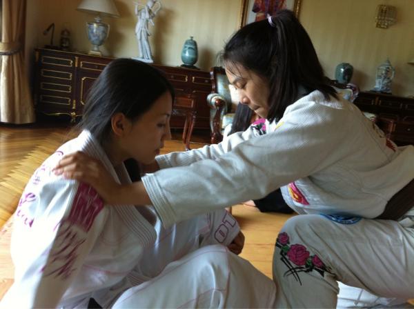 Yeon Ah Nim begins jujitsu training. Umma's first jiu jitsu class! Peace police and peace military training! Good people strong; no more bullies!