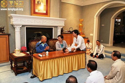 Mrs. McDevitt sang for Shin Pyeon Nim "악어떼," (This Old Man) 올챙이와 개구리," (Tadpoles and Frogs) and then Rev. Yang (서울의 창가 -- The window of Seoul), Rev. Park (소양강 처녀 Soyang virgin), Rev. Hyung Jin Moon (Top of the World) sang while shin Pyeon Nim danced to the songs.