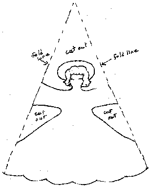 C. Cut around head and shoulders and remove the center section. Cut sides out leaving hands and skirts connected. Open to a circle of lace angels.